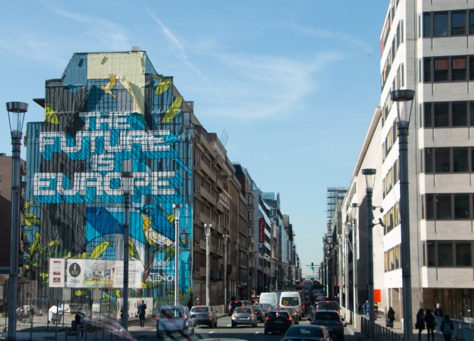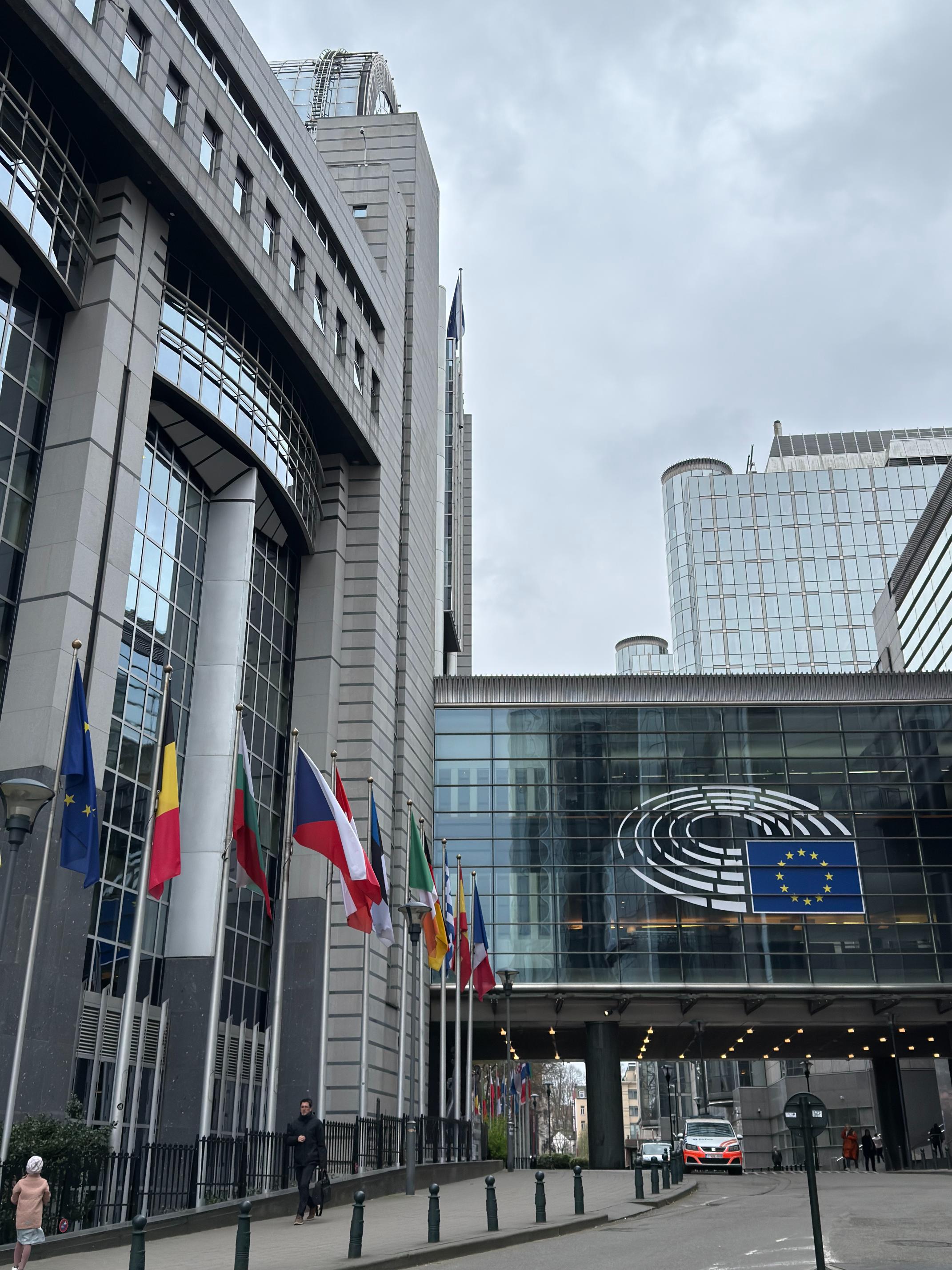 We arrived in Brussels around 10 a.m. The city greeted us with its characteristic blend of historic buildings and modern office complexes. The bus stopped near the European Parliament complex, and we continued on foot toward the parliament building.