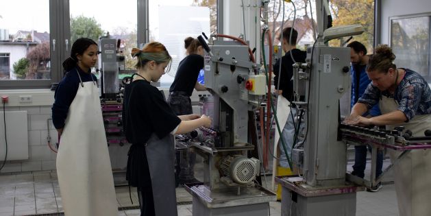 Wie klein die Welt der Glaskunst ist, erlebten knapp dreißig Auszubildende der Glasfachschule NRW am 14. November 2024 bei einer Exkursion nach Linnich bei Düren: Im Deutschen Glasmalereimuseum entdeckten sie Arbeiten der Glasmalerin Katja Mölich, die in diesem Jahr ihre Ausbildung an der Glasfachschule beendet hat. Und gleich nebenan führte sie Lars Pick durch die Glasmalerei Oidtmann, die älteste Glasmalerei Deutschlands. Pick hat seinen Beruf ebenfalls an der Rheinbacher Glasfachschule erlernt und ist heute, nur fünf Jahre nach seinem Abschluss, Betriebsleiter bei Oidtmann. Mit den Rheinbacher Auszubildenden führte er eine Gruppe, die im Gegensatz zu vielen anderen Besuchern vom Fach war: Sie haben im Sommer die dreijährige Ausbildung zum Glaser / zur Glaserin oder zum Glasveredler / zur Glasveredlerin unter anderem in der Fachrichtung Glasmalerei begonnen. Ihnen bot die Exkursion einen Ausblick in ihr späteres Berufsleben.