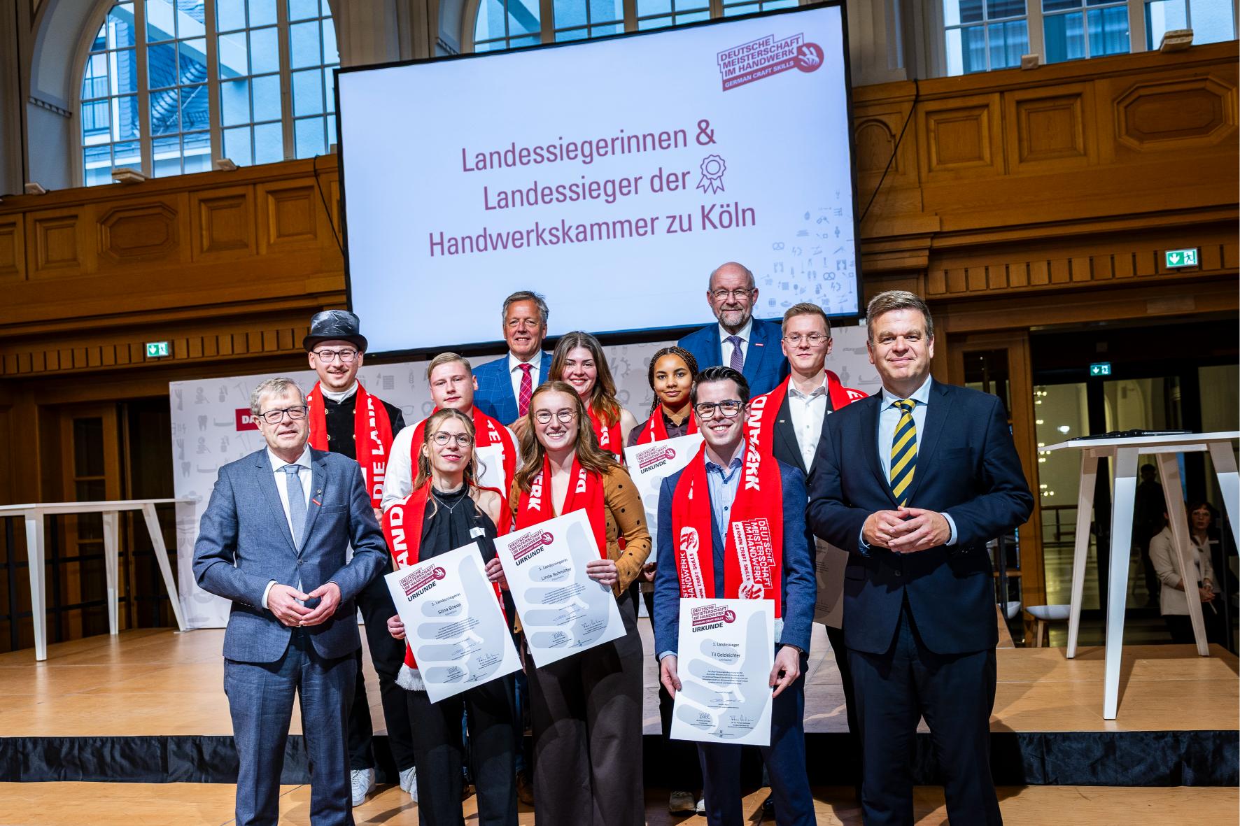 Hinweis HWK: Die Landessiegerinnen und Landessieger aus den Bezirken der sieben NRW-Handwerkskammern wurden auf der Bühne besonders geehrt. Fotografin der Veranstaltung war Sarah Rauch. Auf ihrer Website können Sie Bilder kostenfrei und in guter Auflösung herunterladen.