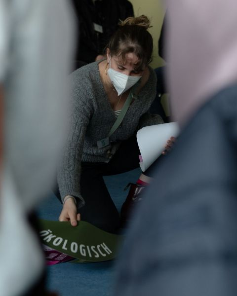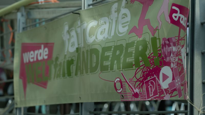 Neben dem 10m x 10m großen Rundzelt, in dem die Bildungsangebote stattfanden, wurde in der Mensa ein fairCafé eingerichtet, das zum regen Austausch der Schüler*innen über die gewonnenen Kenntnisse einlud und Snacks aus fairem Handel anbot. Hier konnten sie auch eigene ausrangierte Kleidung abgeben und untereinander tauschen und so einen ersten Schritt Richtung Nachhaltigkeit gehen.