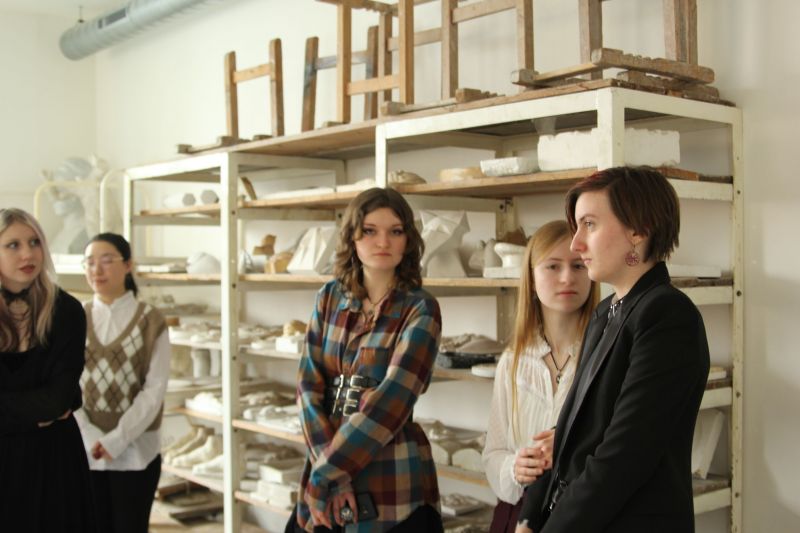Die erste Unterrichtseinheit ging kreativ zu. Entwurfszeichnungen für Tonreliefs, welche bis dato nie zu unseren behandelten Themen gehörten. Hier war zum ersten Mal die vollkommen unterschiedliche Denkweise aller Teilnehmenden zu erkennen. Ein spannendes Unterfangen. Über den Aufenthalt hinweg lernten wir sowohl das Modellieren von Reliefen und Skulpturen aus Ton, als auch das Abgießen, auch PNP (positiv-negativ-positiv) Verfahren. Designgerechte Farbauswahl und das Einschmelzen des Glases bereiteten besondere Freude. Aber auch ein theoretischer Teil sollte mit der Brennkurvenberechnung behandelt werden.