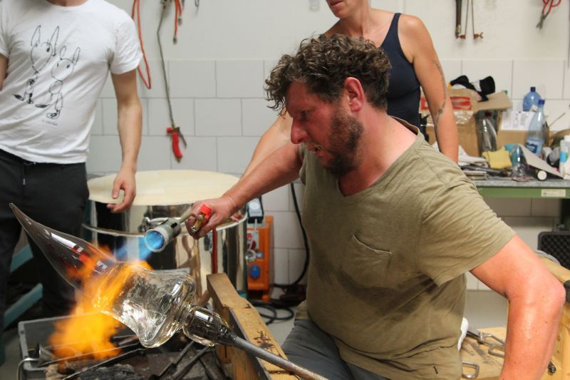 Die Förderung durch die Tutsek Stiftung aus München ermöglichte so den Schüler*innen im 2018 eingerichteten Glasstudio am modernen Schmelzofen und der Glory Hole die Technologien des Glasschmelzens, des Glasgießens sowie des Glasblasens zur Erstellung von Skulpturen zu erproben. Ein Highlight beim 1. Internationalen Glassymposium 2018 in der Schule war unter anderen der australische Glaskünstler Scott Chaseling und John Kenneth Clark aus Schottland. Weitere kleinere Workshop fanden während der Coronapandemie mit regionalen Glasbläsern wie z. B. Korbinian Stöckle aus der Glashütte Gernheim statt. Darüber hinaus wurden im Sommer 2022 im Rahmen des 2. internationalen Glassymposiums Workshops angeboten, in denen künstlerischer Techniken zur Erstellung von skulpturalen Hohlkörpern aus Glas und deren Veredelung sowie weitere Techniken der Glaskunst vermittelt wurden. Es fanden sich international renommierte Glaskünstler*innen (u.a. Mark Locock, Geir Nustad, Tinne Vroonen und Wilhelm Vernim) in Rheinbach ein, um mit den Auszubildenden den Bogen vom römischen Glasblasen mit alten Rezepturen bis hin zum Herstellen von Glasobjekten am modernen Studio-Ofen zu spannen.