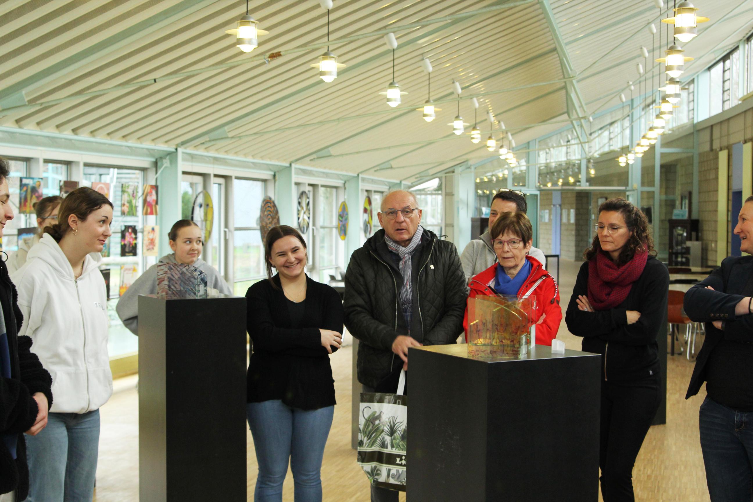 In der abschließenden Ausstellung in der Mensa waren neben unserer Schulleitung, den beteiligten Dozenten und Lehrkräften der Gesamtschule auch viele Eltern zu Gast.