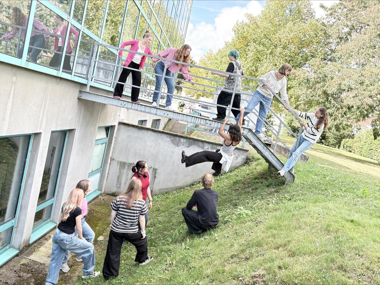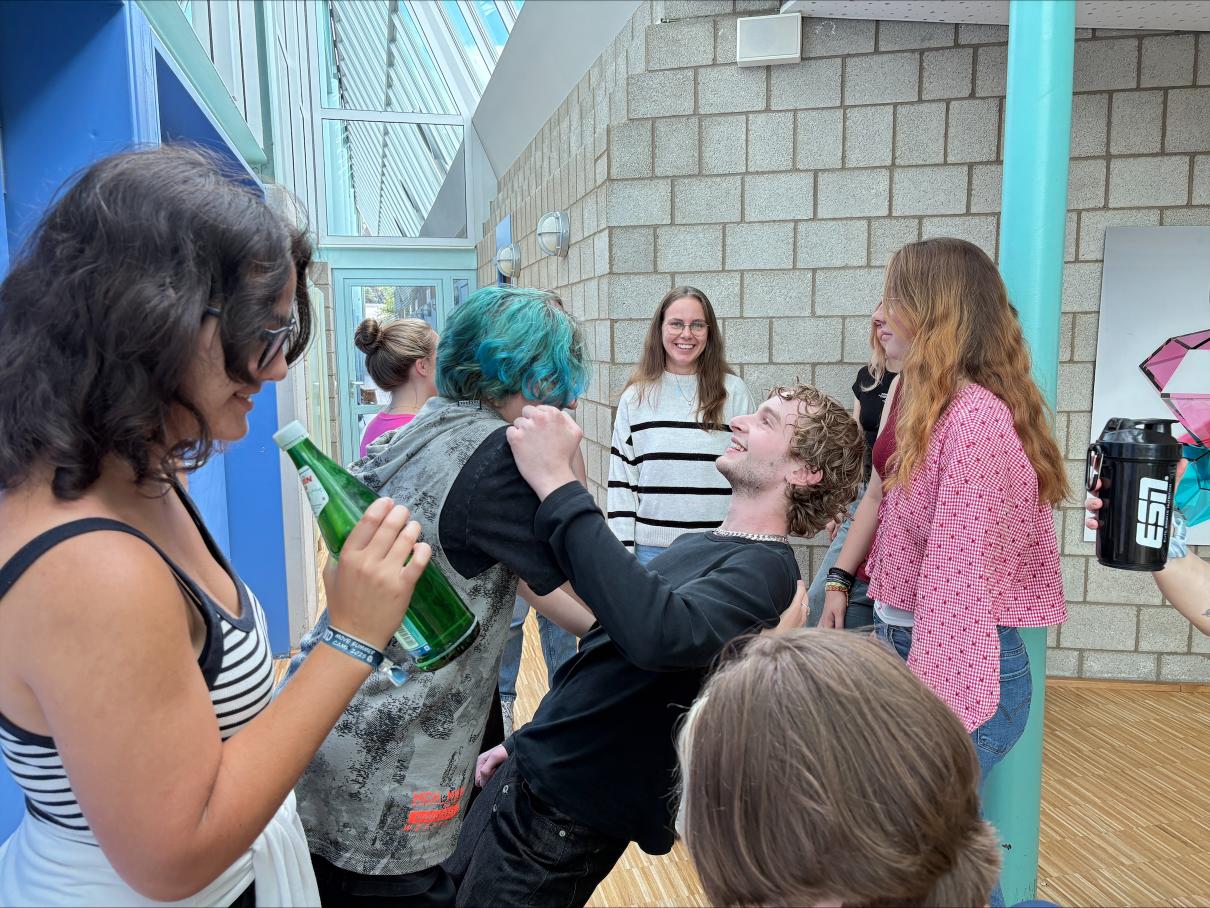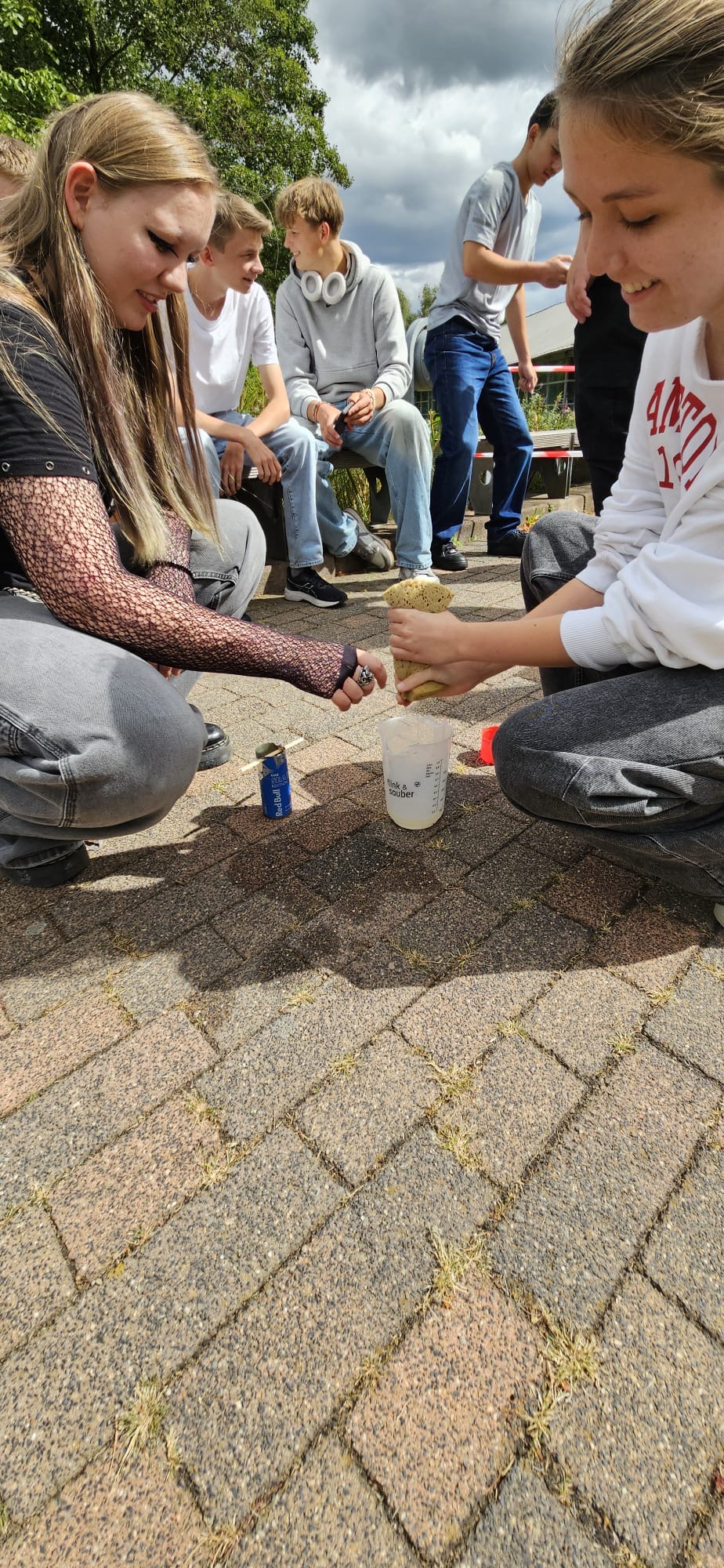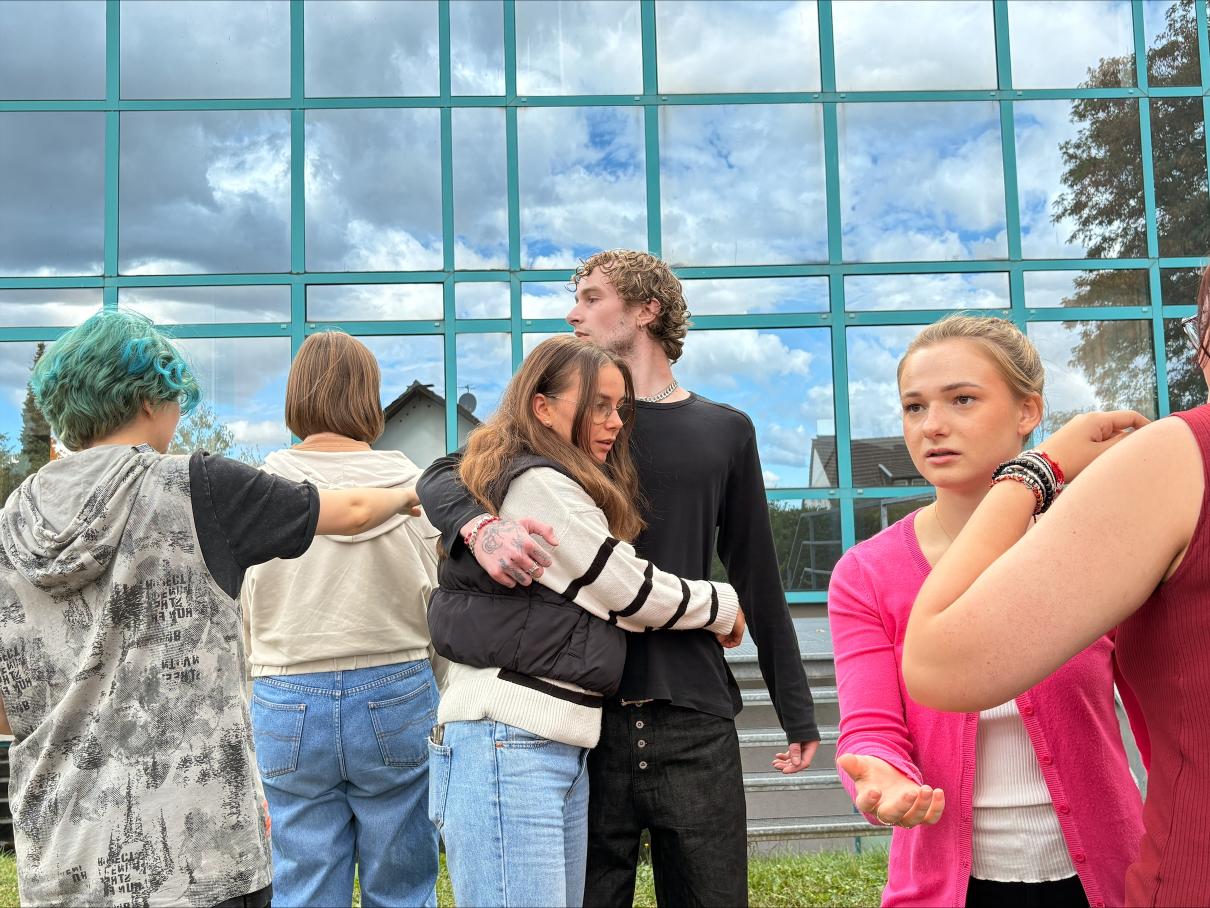 Neben den Gruppenübungen und aktivierenden Spielen, in denen die Schülerinnen und Schüler lernten, als Team zu agieren, boten die Orientierungstage der Klassenleitung auch ausreichend Gelegenheit, organisatorische Themen wie beispielsweise die Schulordnung sowie den Schulabsentismusleitfaden zu besprechen und ihre Schülerinnen und Schüler zunächst außerhalb des Unterrichtsalltags kennenzulernen. Ein Höhepunkt der Orientierungstage war neben den Vorstellungsrunden und Gebäuderundgängen das Teamspiel „Fröbelturm“. Hier konnten die Klassen ihre Teamfähigkeit beweisen. Dabei mussten alle gemeinsam „an einem Strang ziehen“, um einen Turm aufzubauen. Die Freude der jeweiligen Klassen war nach erfolgreicher Absolvierung der Aufgabe groß. Ergänzt wurde das Angebot durch Kurzvorträge, u. a. zum Thema „wertschätzendes Feedback geben“. Die neuen Erkenntnisse konnten sofort in kleinen Outdoor-Challenges rund um die Glasfachschule Rheinbach umgesetzt und eingeübt werden. Neben Aufgaben wie „Wassertransport auf Zeit“ galt es auch bekannte Filmszenen nachzustellen und fotografisch festzuhalten.