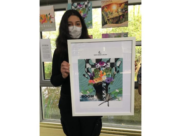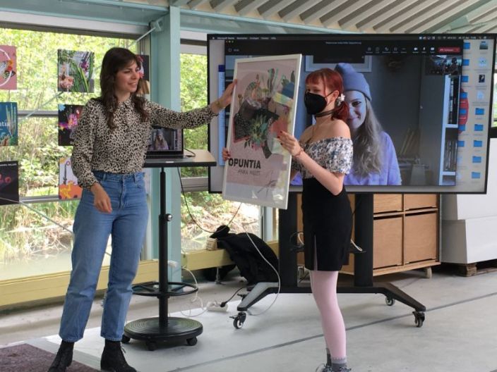 Den Gewinner*innen wurde mit signierten und gerahmten Ausdrucken ihrer Entwürfe gratuliert. Die Gestaltung der EP „Opuntia“, die bald auch gepresst wird, hat Lena Mengelberg gewonnen. Die Entwürfe für die Veröffentlichungen der Singles „Boom“ und „Questions“ stammen von Melissa Pinheiro Macario und Luis Oeser.