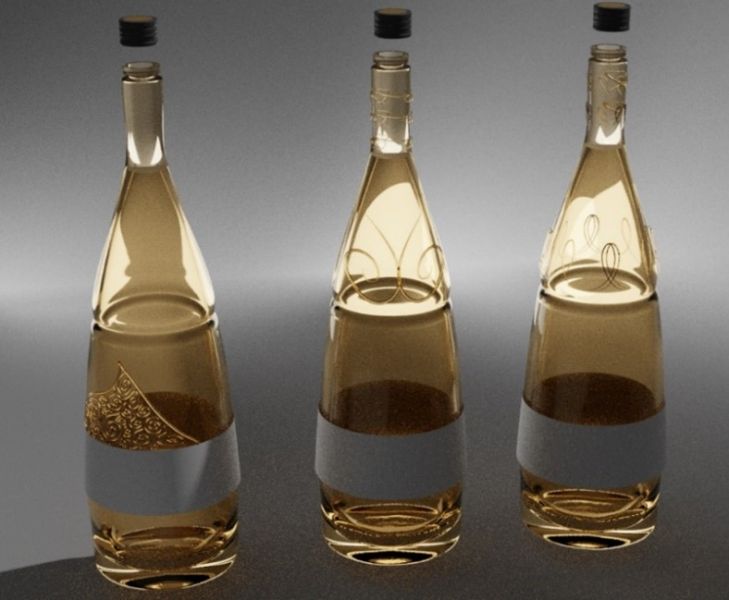 Die Entwürfe von Chaban Lelo, 3. Platz, konzentrieren sich auf die Halsverzierung einer klassischen Weinflaschenform. Es handelt sich um stilisierte Traubendarstellung mit sich vertikal ausdehnenden Spiralformen, die sich im Auge durch Überdecken kreuzen und ein Zeichen für den Kreislauf (der Wiederverwendbarkeit) darstellen sollen.