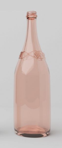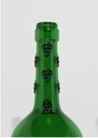Hier wurde eine klassische Flaschenform in Form und Farbe dezent modifiziert und mit einem wohlproportionierten Relief oberhalb der Flaschenschulter dekoriert. Das Dekor zeigt eine umlaufende Unendlichkeitsschleife mit einer stilisierten Traubendarstellung.